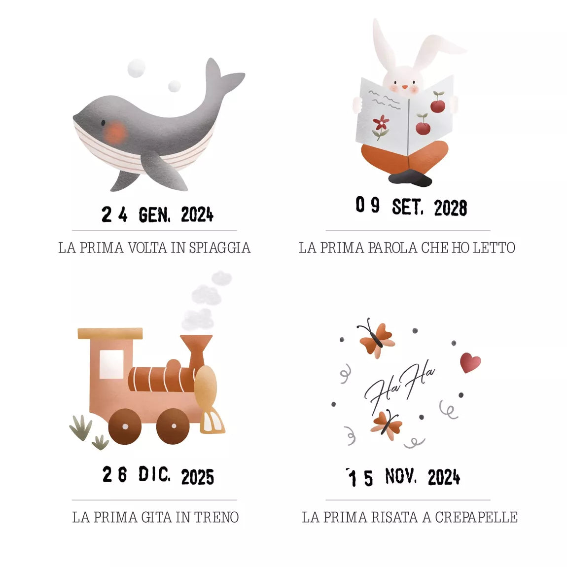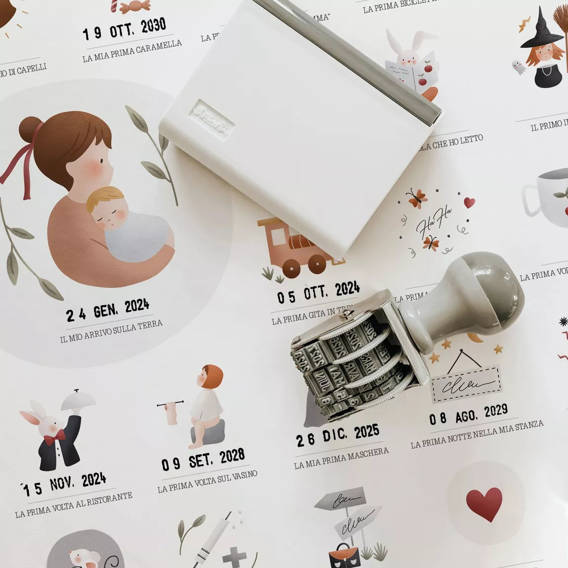 Tutte le date da ricordare dei primi anni del bambino su un poster: la prima volta che dico "mamma", La prima notte completa, la prima bua... 61 prime volte da datare per ricordare sempre i momenti più belli.