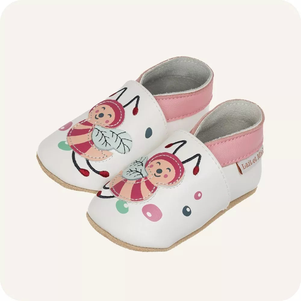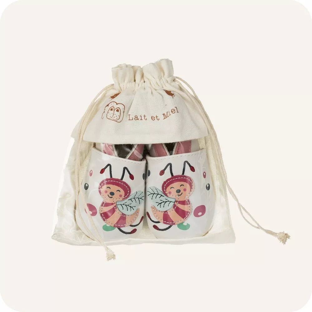 Petite abeille pimpante a remplacé ses ailes par des feuilles toutes fraîches ! C’est pour nous apporter le printemps ! La tige est en cuir et la semelle en suède (cuir retourné).
